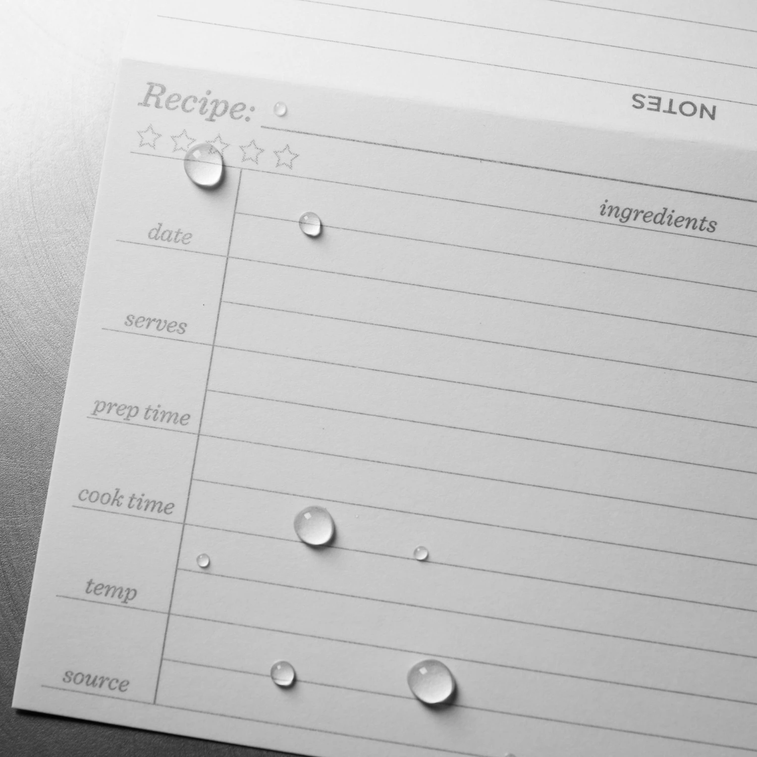 WEATHERPROOF PAPER: 50 Recipes cards per pack. Keep your recipes safe with Rite in the Rain splash-proof paper.