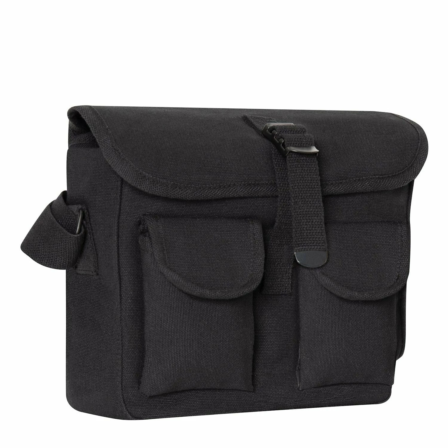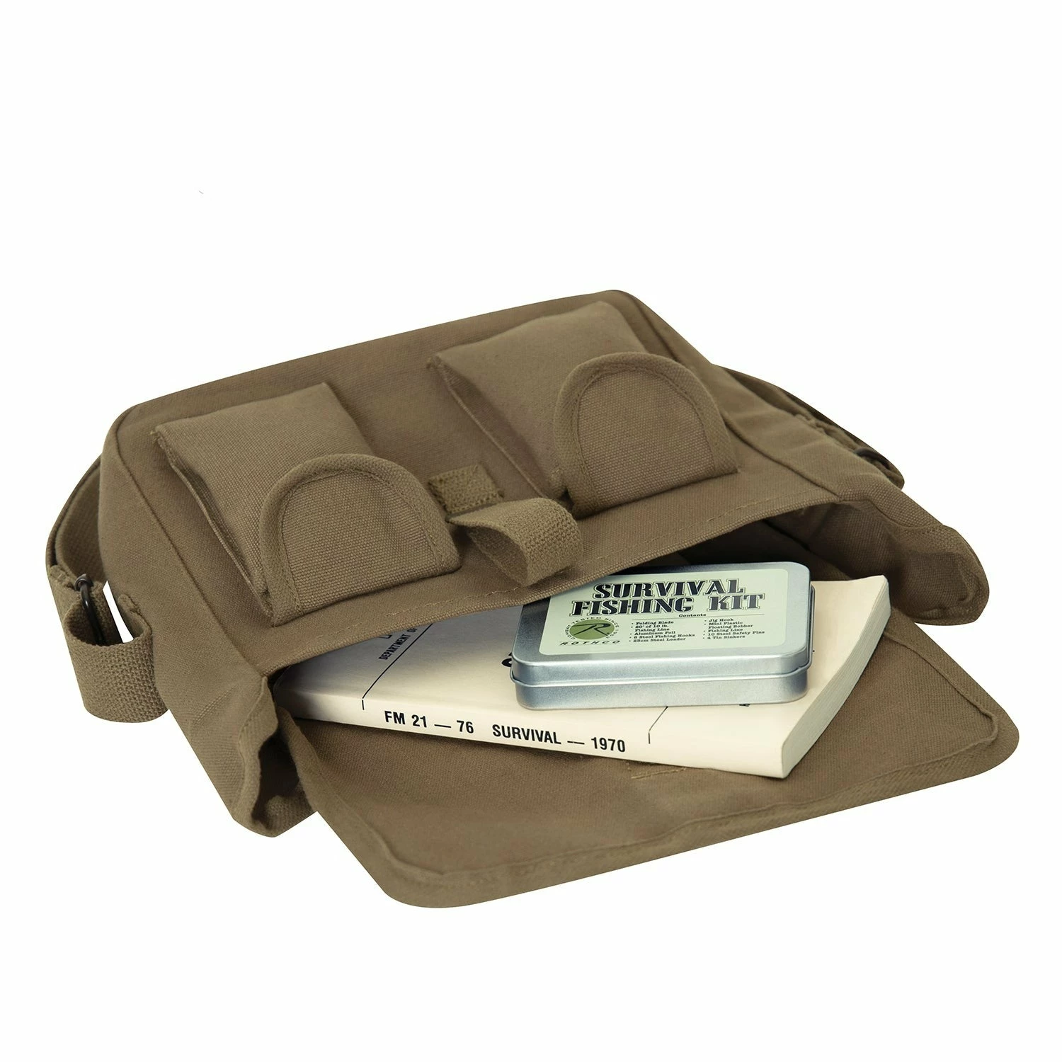 Rothco’s Ammo Shoulder Bag features a heavy-weight cotton canvas with an adjustable shoulder strap, two outside hook and loop closure pockets and a front flap with metal fold-over buckle closure ensuring your ammo and any other gear remains safe and secure.