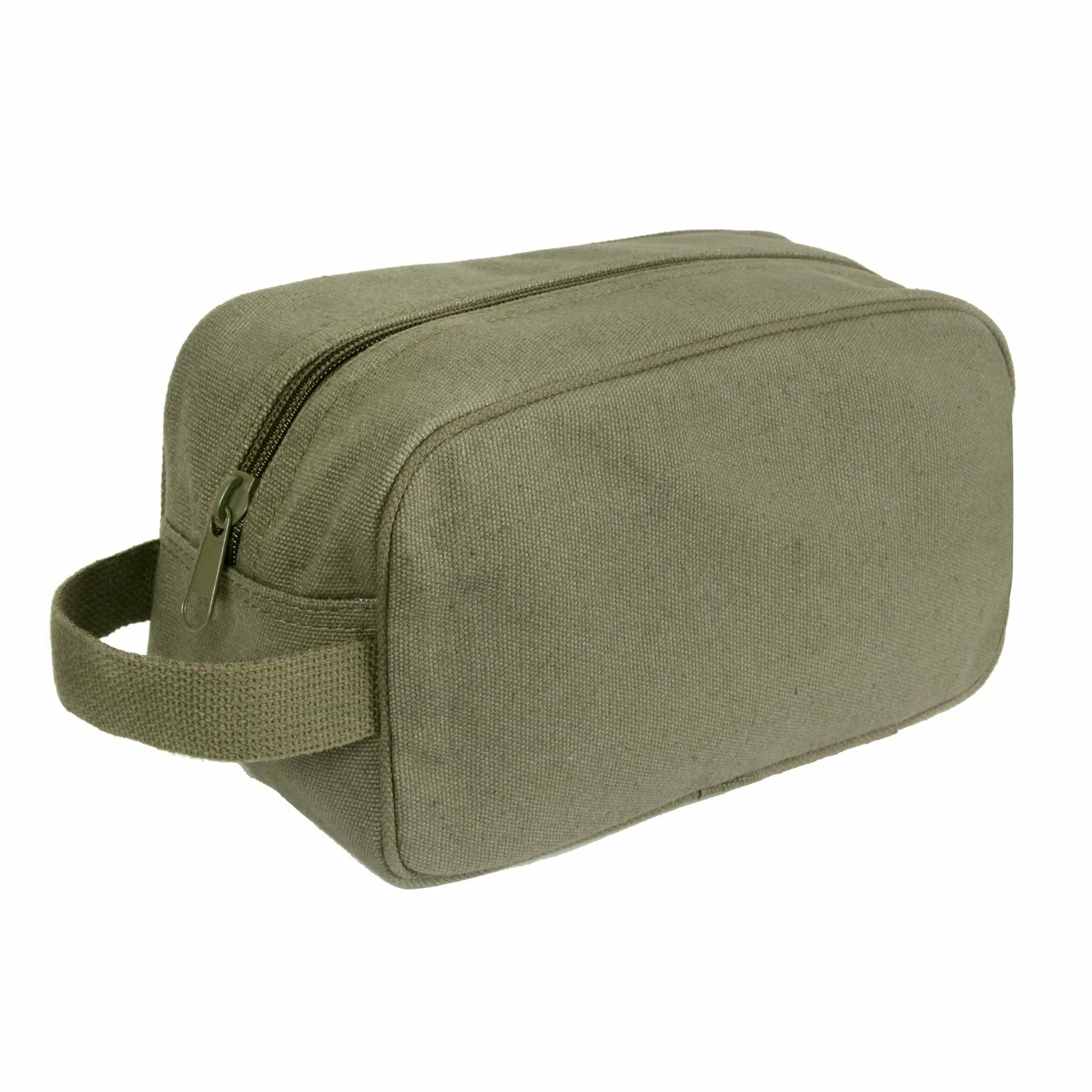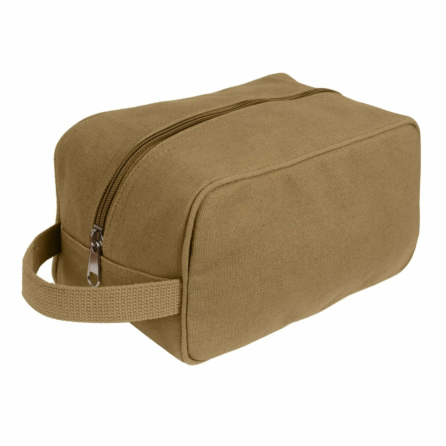 Rothco’s Travel Kit is perfect for storing essential toiletry supplies within a plastic zipper closure. Constructed of heavyweight canvas material and the interior lined with polyester, this toiletry pouch is built to last all your travels. Measuring 10″ X 5″ X 5″, the collapsible supply kit can be stored almost anywhere in your luggage. The canvas travel pouch features a single side handle for convenient carry as well.
