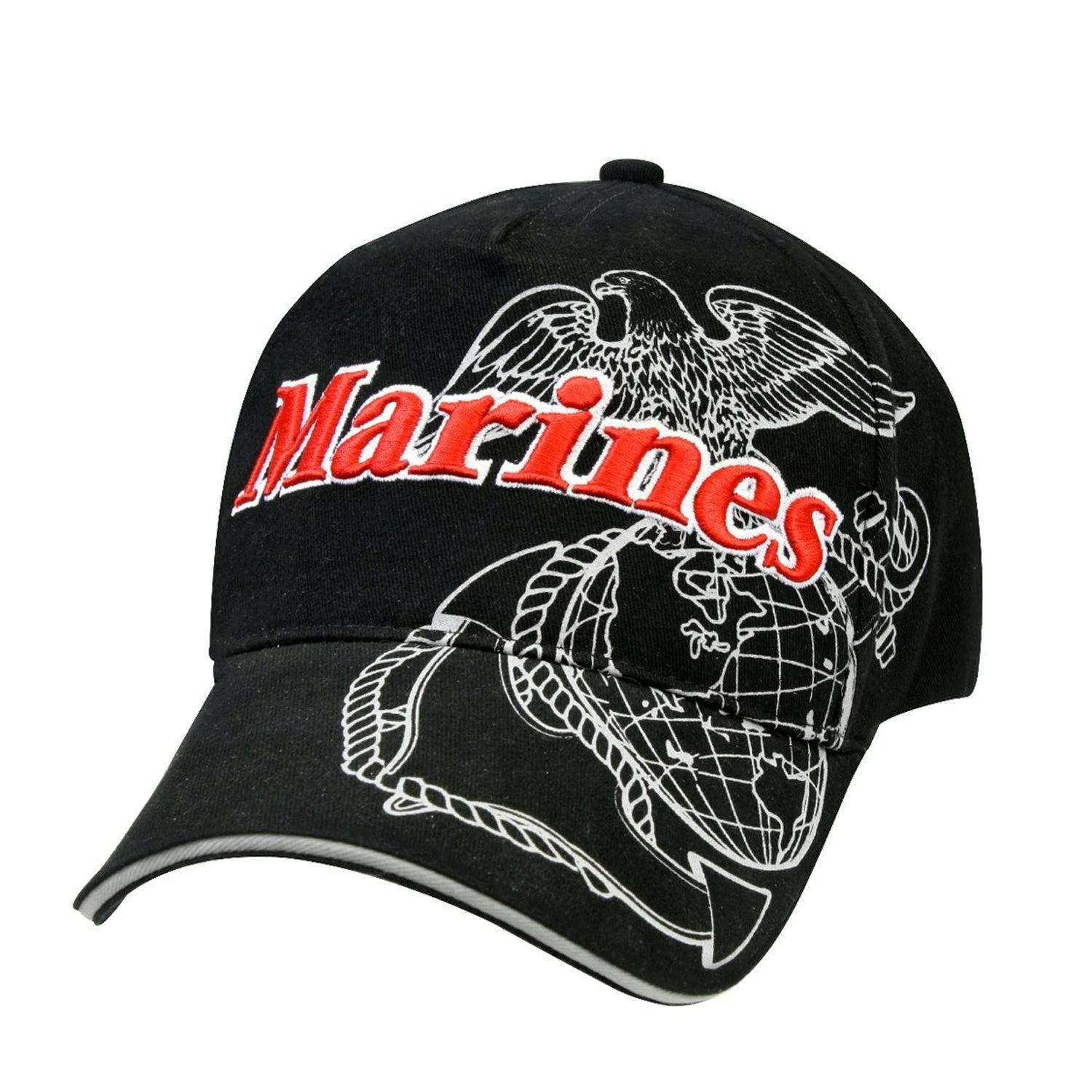Rothco Deluxe Marines Eagle, Globe & Anchor Low Pro Insignia Cap is made from durable brushed cotton twill, featuring a raised 3-D embroidered Globe & Anchor insignia on the front panel and brim. This military hat has a hook and loop closure for adjustability.