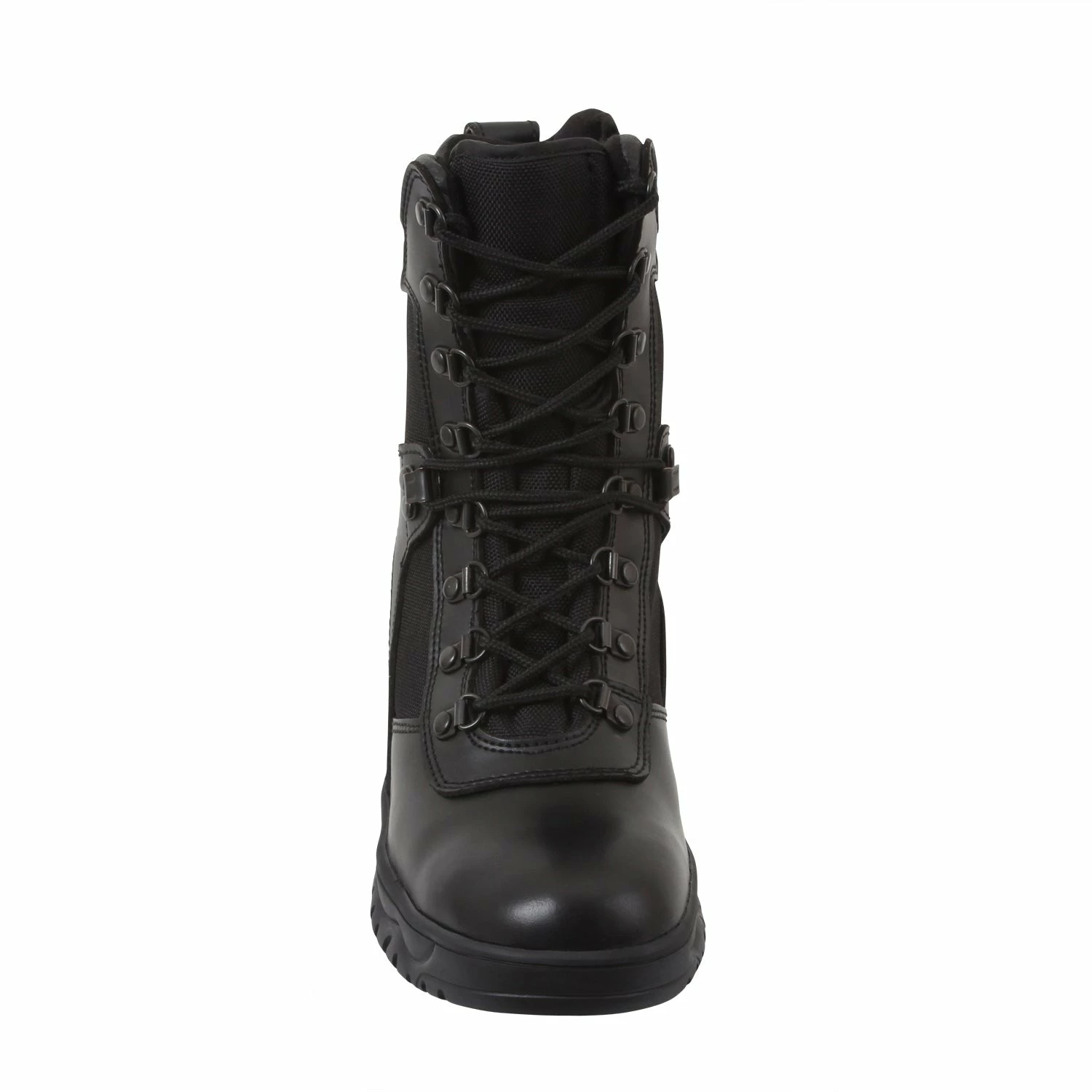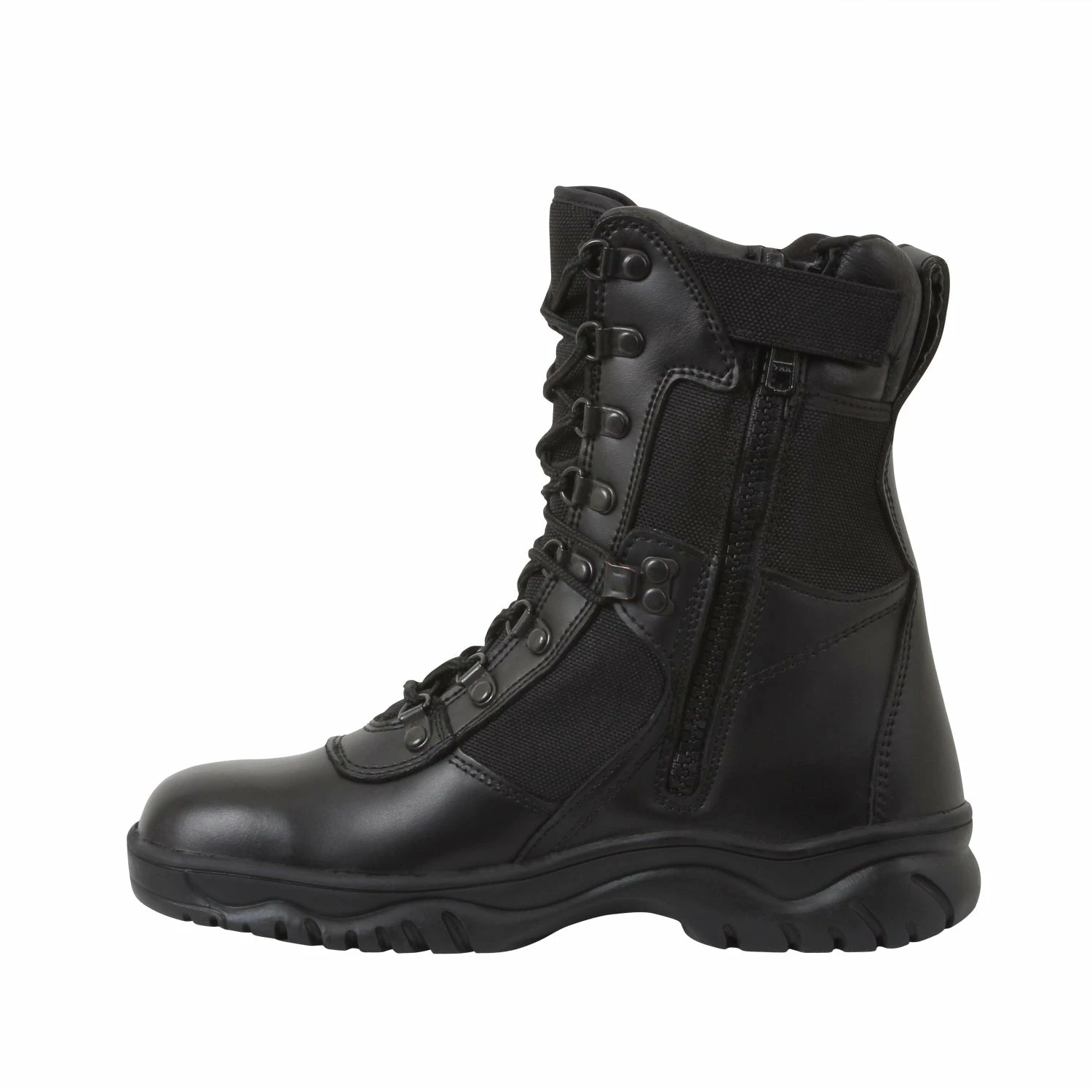 - Side Zipper Closure With A Hook And Loop Tab Allows You To Save Time By Easily Putting On/Taking Off Your SWAT Boot Without Having To Tie / Untie Your Laces