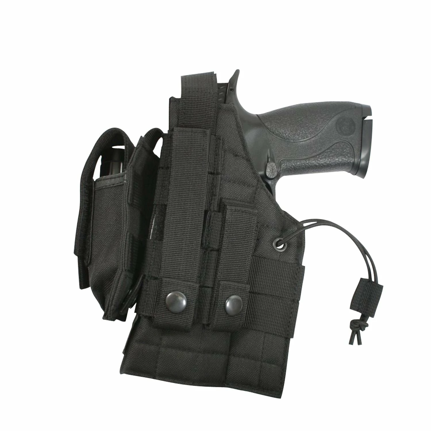 Rothco’s MOLLE Modular Ambidextrous Holster features a detachable magazine pouch and is perfect for both right and left handed draw. Easily mount the holster to tactical vests, packs, or anything with a MOLLE panel using the two removable MOLLE straps with snap closures. Perfect for soldiers, public safety, MilSim players, and more.