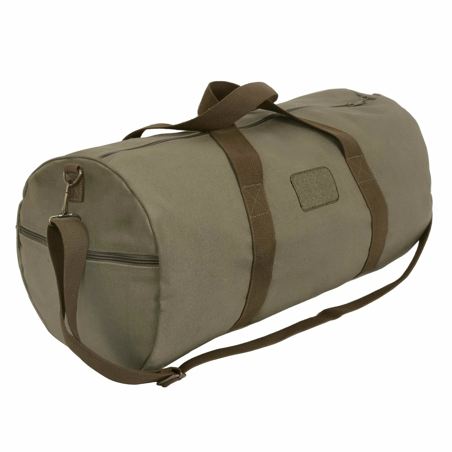 Rothco’s 24” Two-Tone Duffle With Loop Patch features a vintage olive canvas material with brown canvas accents. The canvas duffle bag is perfect for anyone on the go and is an ideal travel bag or gym bag. Features include a sturdy double zipper with access to the main compartment, zipper end pocket, grab handle, detachable & adjustable shoulder strap, and carry handles. The shoulder duffle bag also comes equipped with a 2″ X 3″ loop field, which allows you to customize with any hook morale or insignia patch you want.