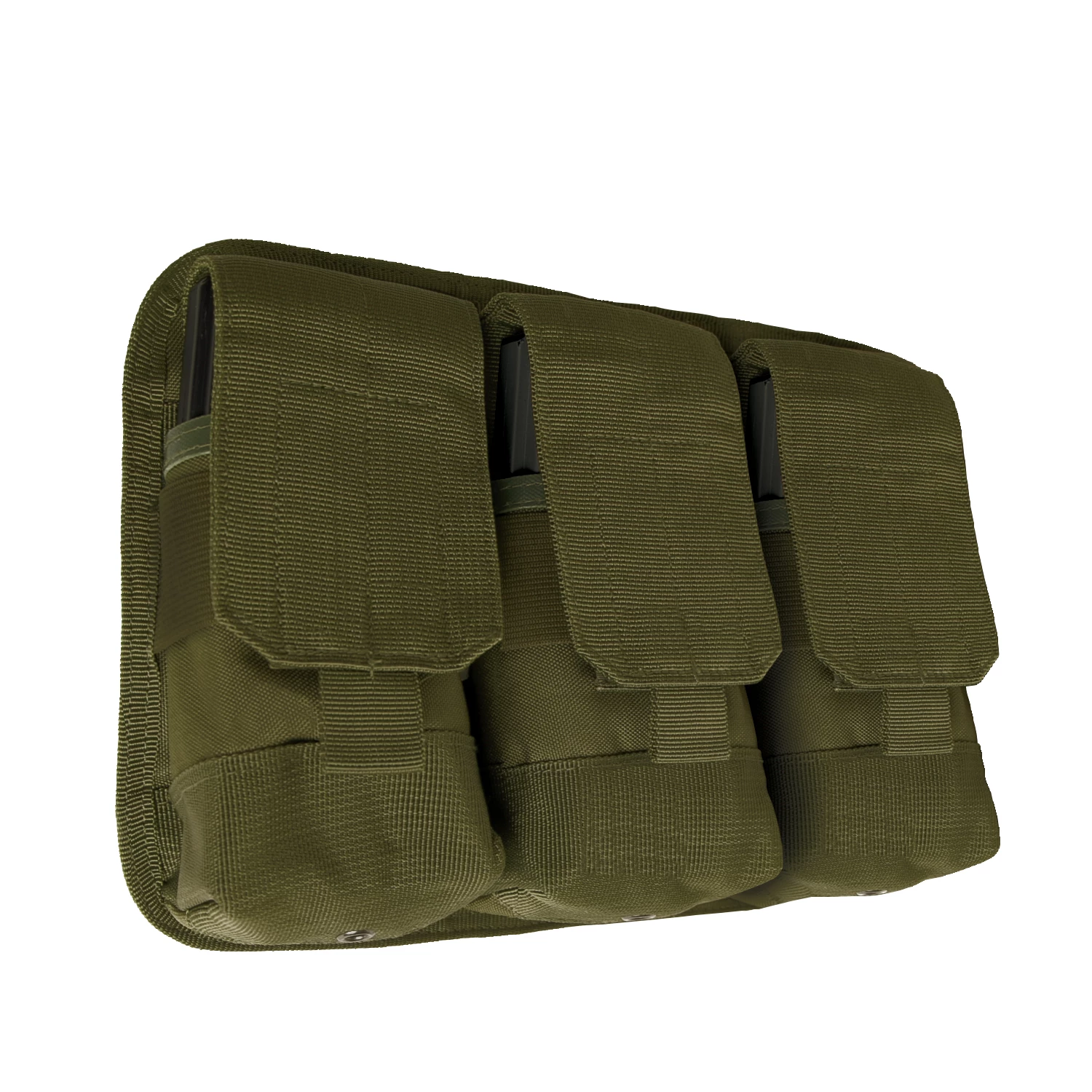 Rothco’s Universal Triple Rifle Magazine Pouch is designed to secure six M-16 mags or three AK-47 mags to provide you with versatility at the range or in the field. Each pocket contains a hook and loop flap closure so you can adjust the length of the flap based on which magazine you are storing. Constructed with long-lasting denier polyester (MultiCam made of denier Cordura nylon), the pouch is designed to withstand the weight of your ammunition.