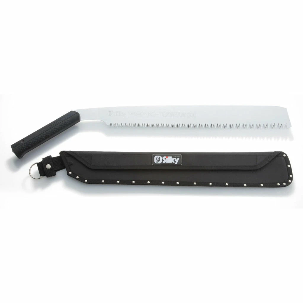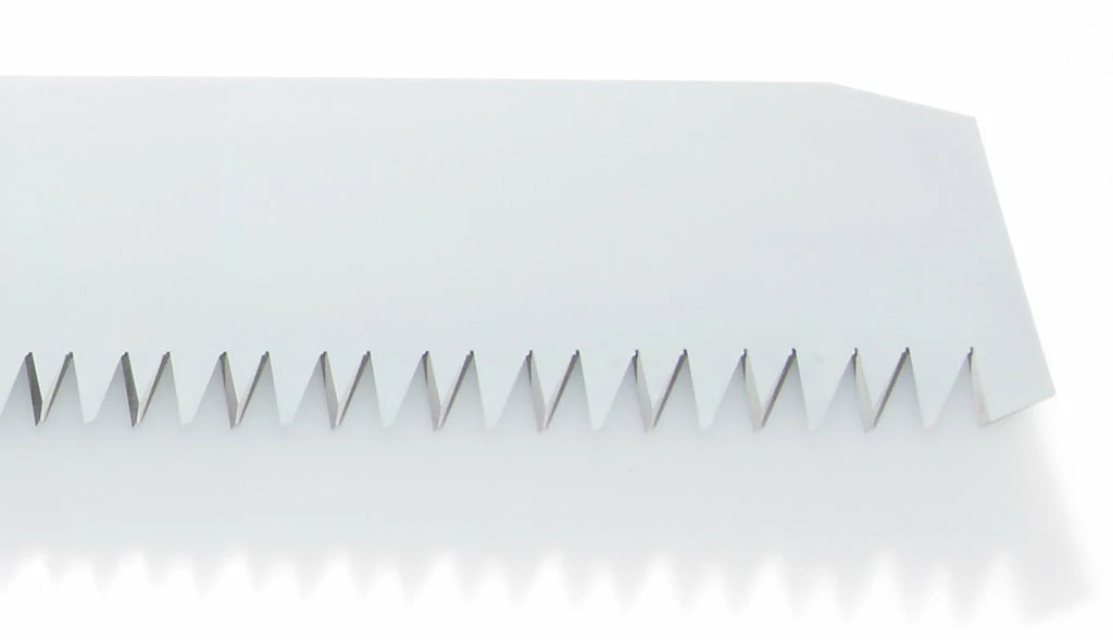 Heavy-duty saw for cutting large branches. Four rows of precision-ground, razor sharp teeth provide fast, clean, and smooth cutting action. Chrome-plated mono-constructed blade is ultra-strong and resists rust. Sure-grip handle absorbs vibration while cutting. Comes with sturdy nylon shoulder bag with Velcro fastening, and a pocket for replacement blades. Made in Japan.