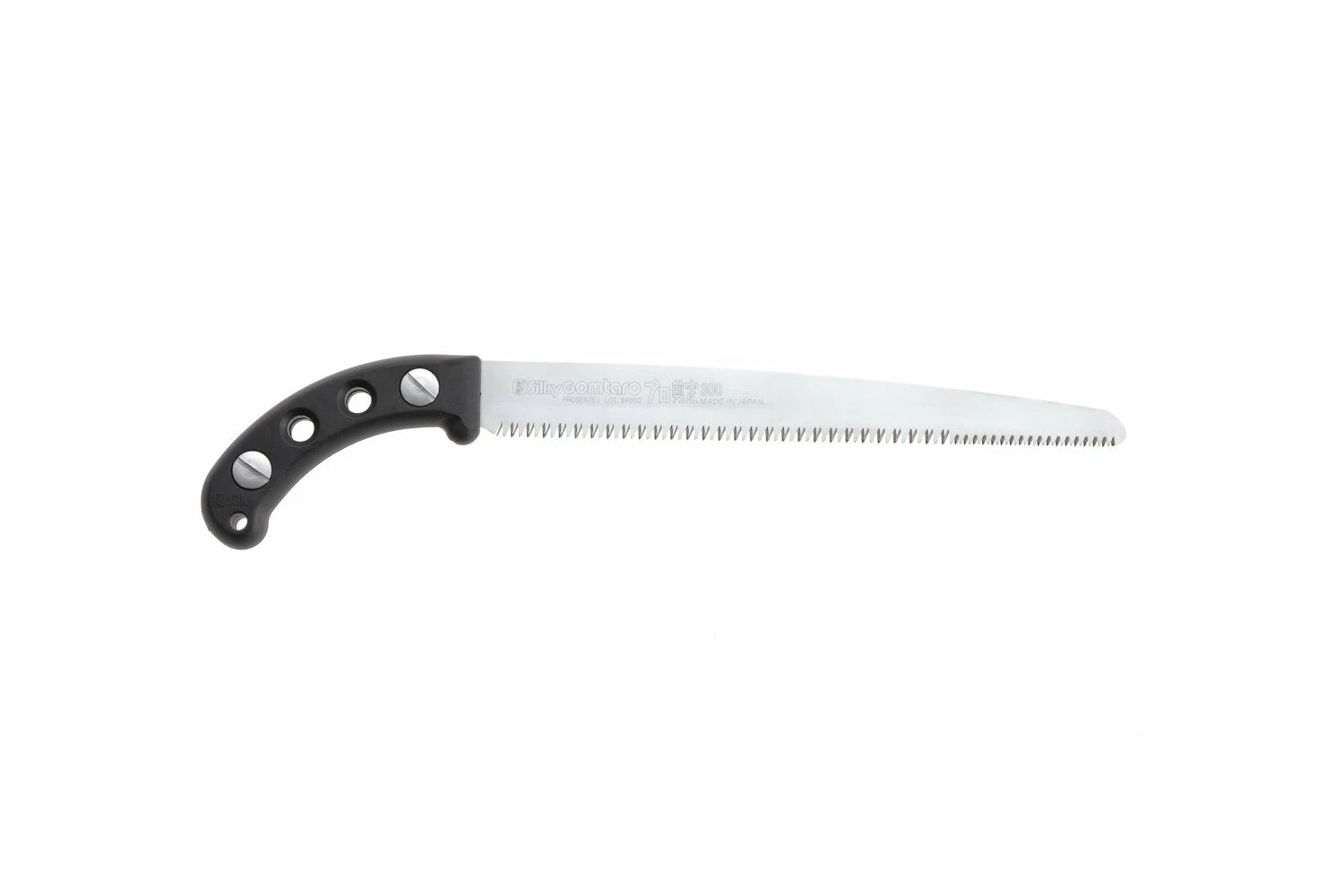 Smaller 12 tpi at the toe of the blade allow for quick fine pruning of suckers or small Branches while larger (7 tpi) teeth tackle the bigger stuff. SILKY uses rust-resistant, hard Chrome plated SK4 Japanese steel for its blades: tough and durable tools. Four cutting angles and electronically hardened teeth make this a well balanced and professional tool. 30 centimeters blade length. 12 inch long blade. The king of the orchard. Made in Japan. Comes with a yellow sheath.