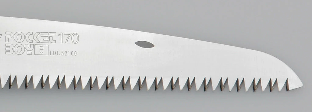 Don’t let its size fool you. This compact little saw has precision-ground, razor sharp teeth! 6 3/4 inch blade and 7 teeth per inch of electronically hardened cutting surface. The Pocketboy 170 Large Tooth is hard chrome treated to resist the effects of rust and tree resin. Blade locks in two positions for straight and flush cutting. Medium, Fine and Extra Fine blades are also available for this handle but are sold separately. Made in Japan.