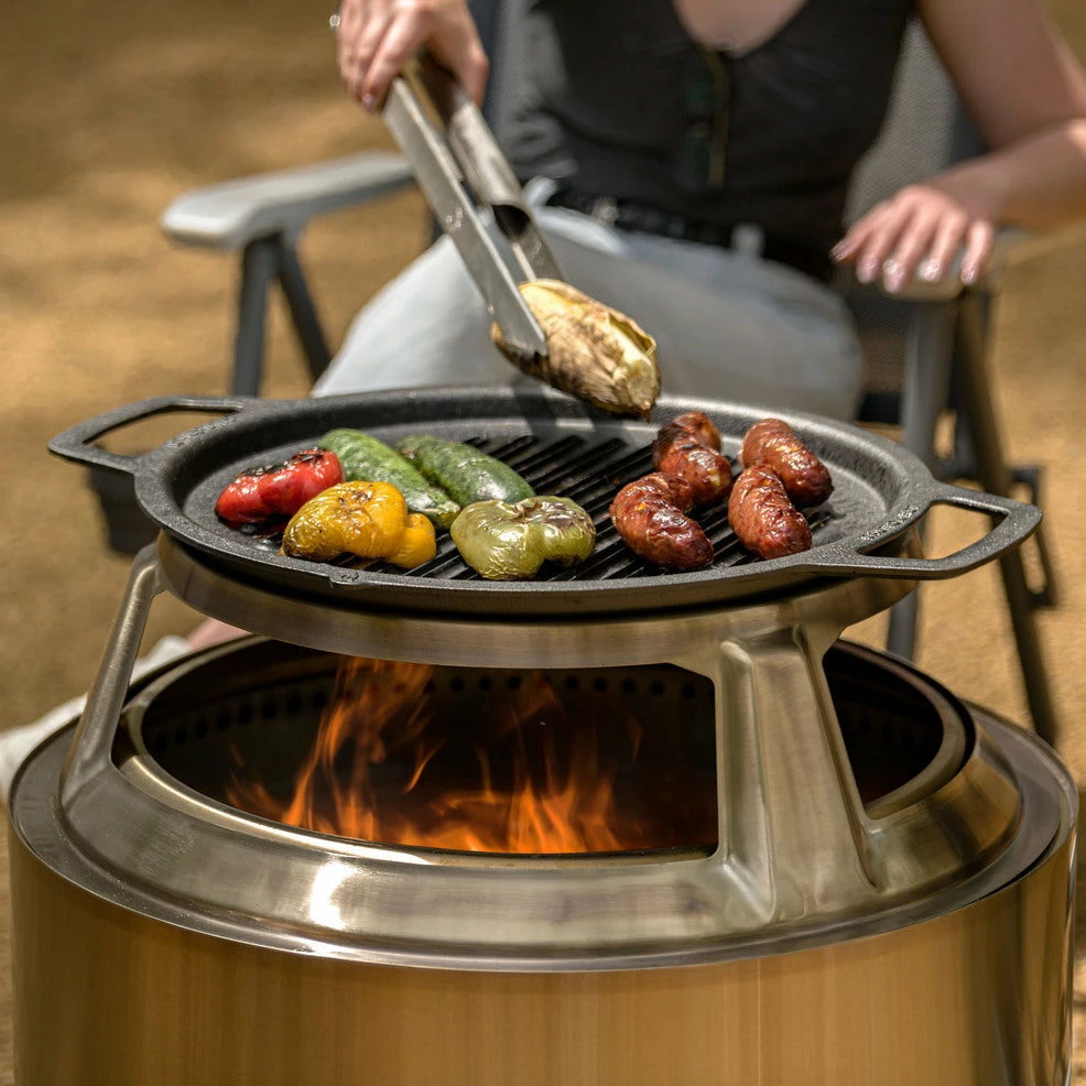 - Affixed with three stabilizing feet, Cast Iron Grill joins with Hub for unshakable balance
