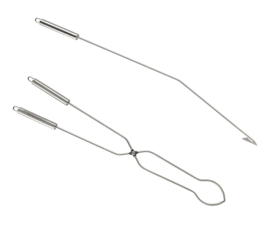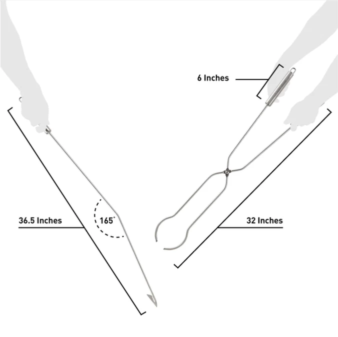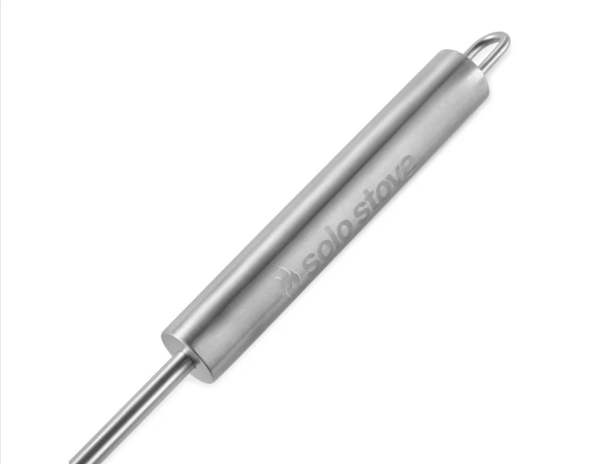 Solo Stove Fire Pit Tools are specially designed to be used with your Solo Stove Fire Pit. The unique angle of the log poker allows you to adjust the wood safely, keeping your arm away from the flame. The log grabber is also angled to make adjusting wood easier by lessening the resistance against you and features flattened tong tips to pinch and hold smaller wood, allowing you to easily add more to just the right place. The Fire Pit Tools are made from 304 stainless steel and have hooks for convenient hanging.