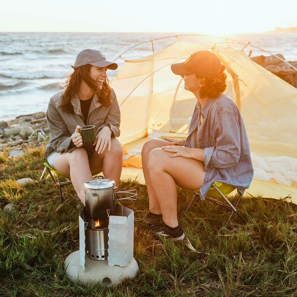 Cooking for two? Titan is your helpful companion for hiking, backpacking, and culinary adventures. Weighing just over a pound, it’s ready to travel, warm, and inspire you. Our Signature 360° Airflow Design™ creates a super efficient burn using sticks and twigs so you can have hot food in minutes, anywhere your adventures take you.