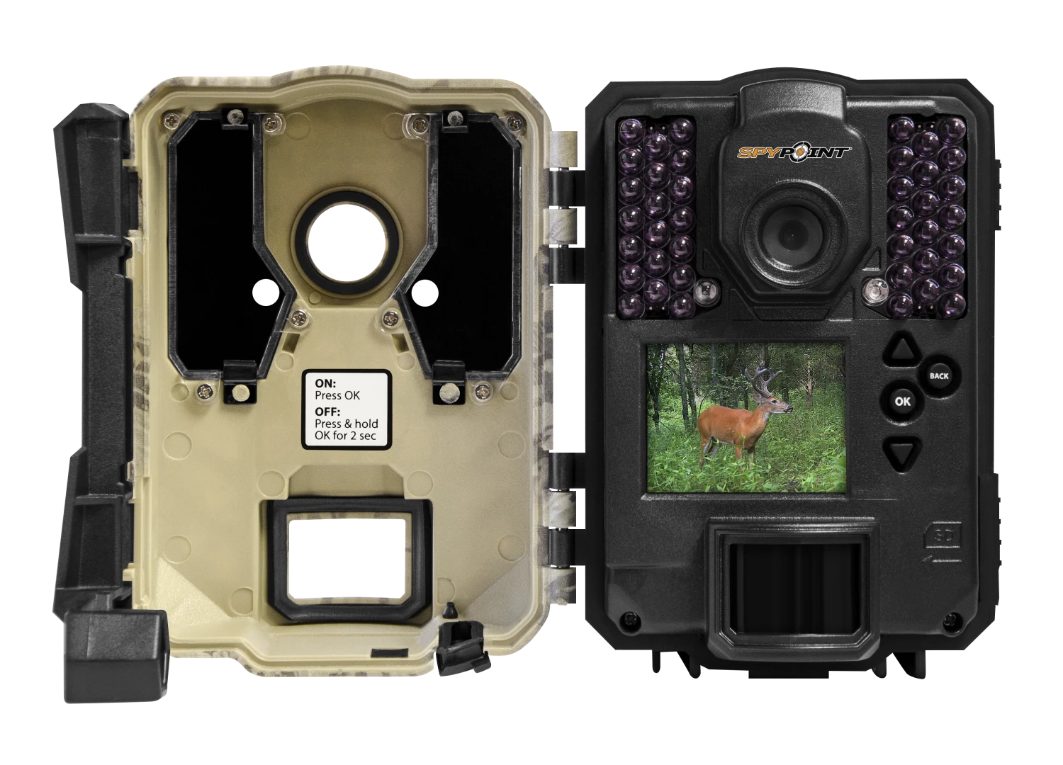 The FORCE-DARK from SPYPOINT is a feature-packed camera that makes a great addition to any scouting program. As its name implies, the FORCE-DARK uses virtually undetectable invisible LEDs that produce no visible flash when used on the no-glow setting. SPYPOINT’s hybrid illumination technology allows you to select one of four flash settings to suit your needs, like no glow for maximum concealment. When you need to reach out into clearings or food plots there is the boost or blur reduction setting, and the optimal setting is a blend which produces a lower glow than standard IR flash.