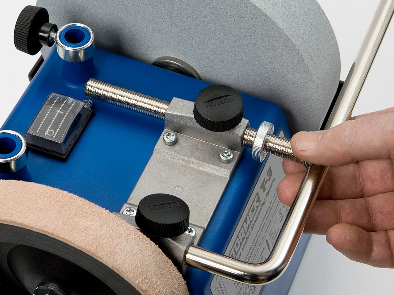The versatile Tormek Universal Support is the basis of the Tormek system. It is made of 12 mm (approx. 1/2″) round steel and has a double mounting for maximum stability.