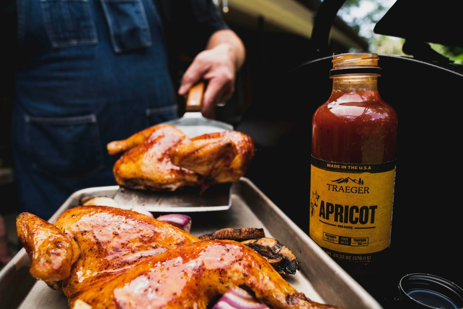 Take your chicken and pork to the next level with Traeger Apricot BBQ Sauce. This tangy sauce features apricot sweetness along with a hint of heat that’s perfect for everything from glazed chicken and turkey burgers to classic BBQ ribs.