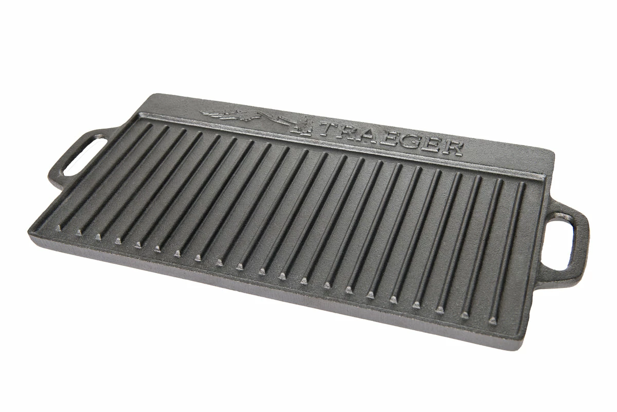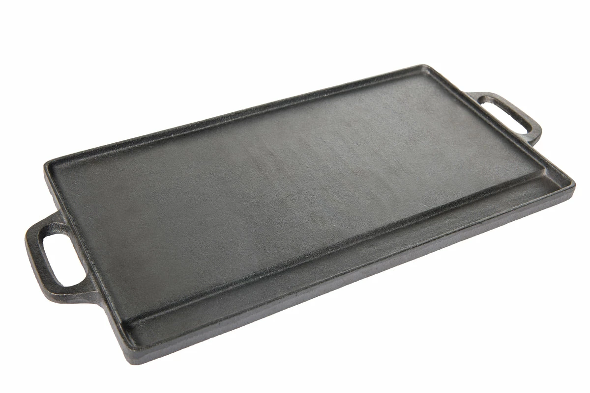 This versatile piece of cast iron cooking equipment makes cooking outdoors simple. It’s pre-seasoned, double sided, and distributes heat evenly for epic grilling experiences.