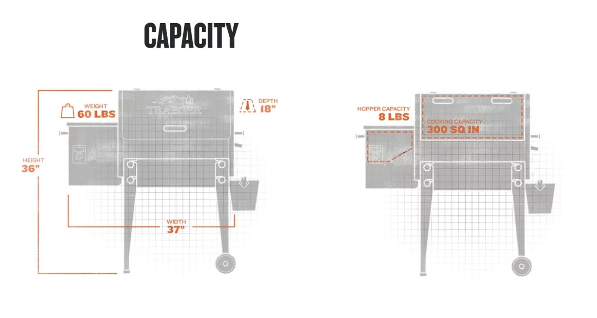 - Pellet hopper capacity: 8 lbs