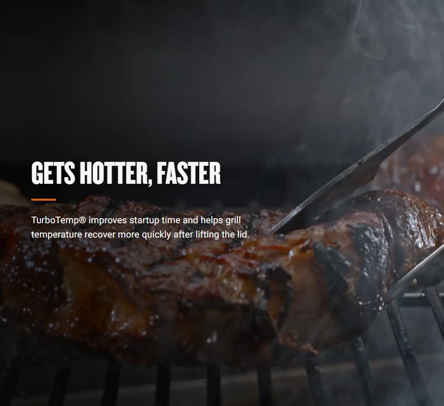 - Turbo Temp: improves startup time and helps grill temperature recover more quickly after lifting the lid