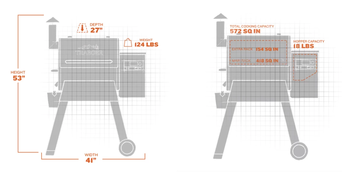 - WiFIRE Technology: monitor your cooks, adjust grill temperature, and access over 1,600 recipes through the Traeger App or select smart home devices.