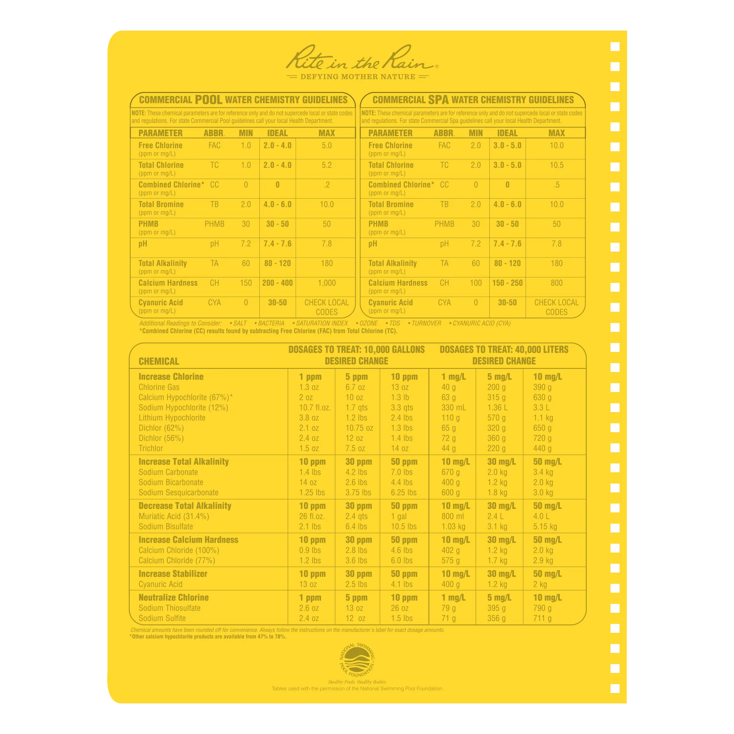 Waterproof Notebooks Rite In The Rain Weatherproof Side Spiral Notebook, 8.5 In. X 11 In. Commercial Pool & Spa Maintenance Log
