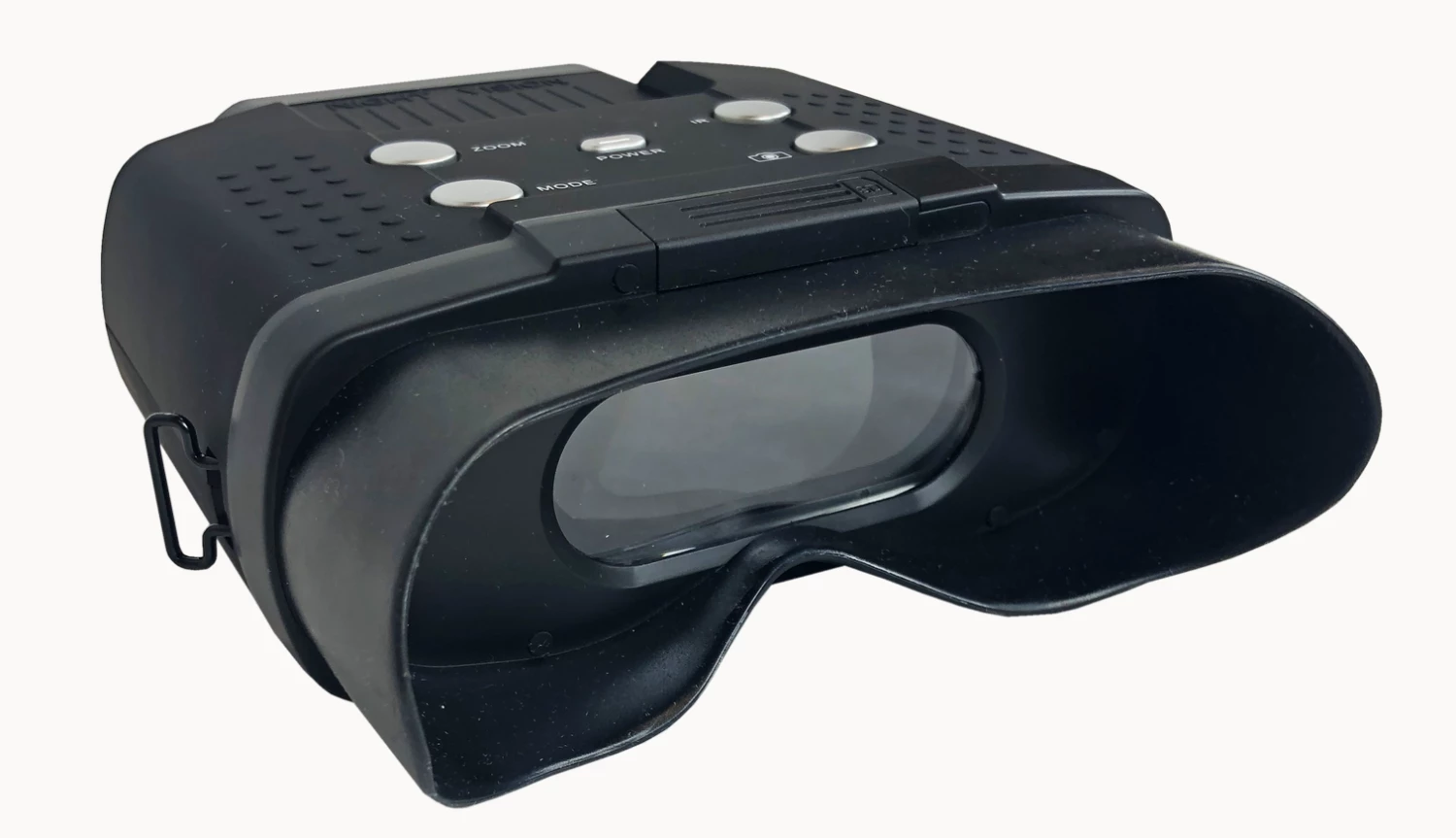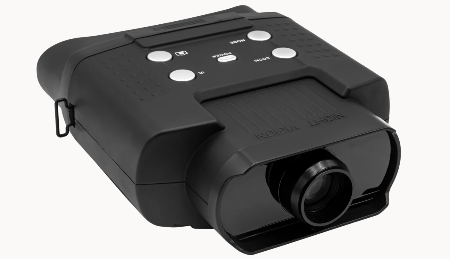 See up to 150 yards at night or 400 yards during the day. Capable of taking photos and capturing videos. Electronic view finder, Large F1.4 aperture, IR LED 3x to 6x zoom In. Perfect for hunting, camping, spectator sports, etc. Battery operated. Comes with padded neck strap.