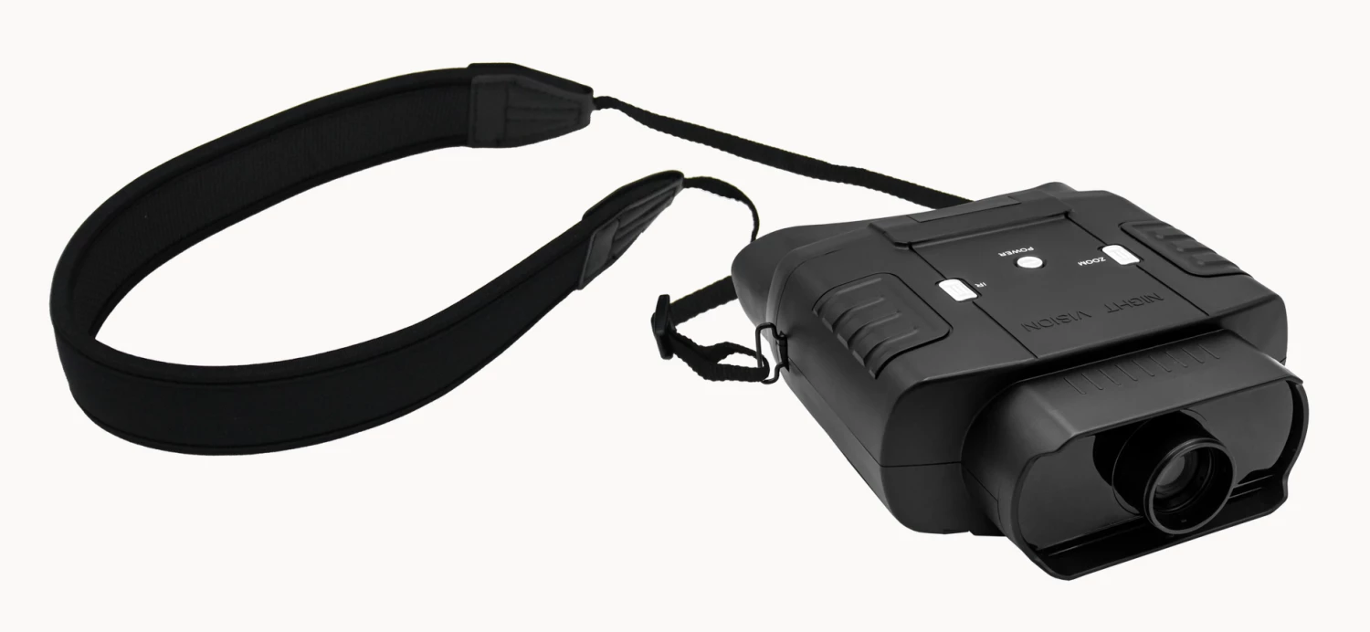 Electronic view finder, Large F1.4 aperture, IR LED, and 3x to 6x zoom. Perfect for hunting, camping, spectator sports, etc. Battery operated. Comes with padded neck strap.